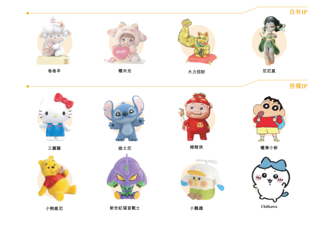事实上,这也是TOP TOY受到关注的关键因素。比起其他潮玩企业,TOP TOY成立时间不过5年,就向资本市场发起冲击,背后离不开名创优品在渠道侧、以及IP授权侧的长期积累。