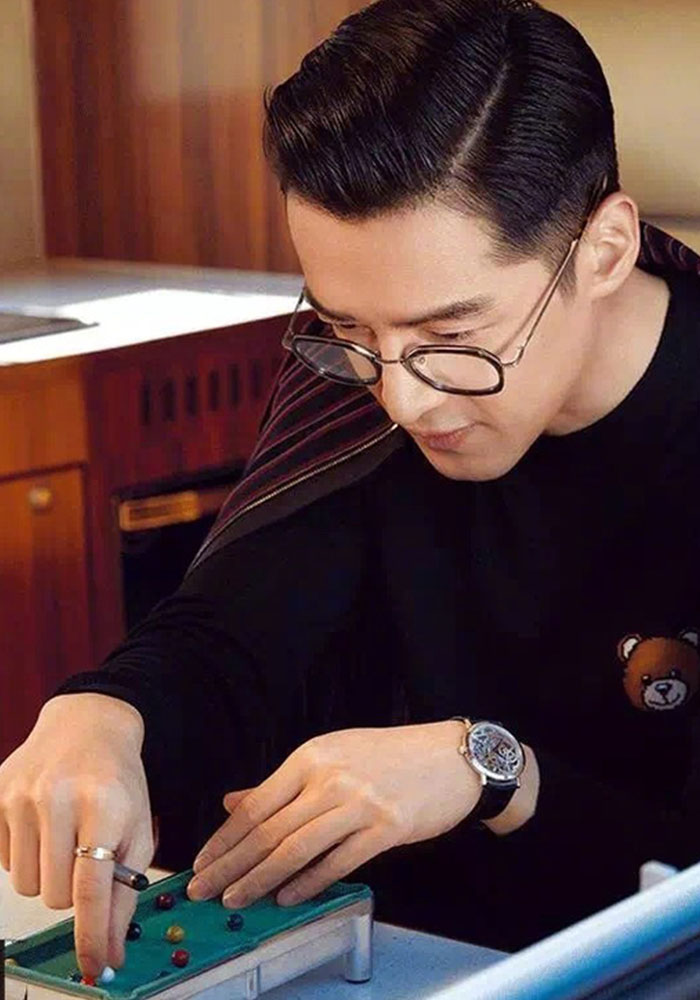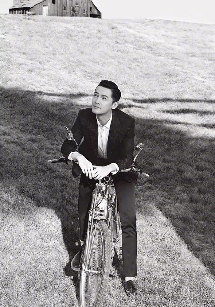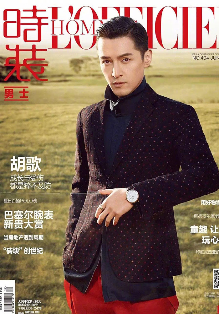 近日,胡歌为《时装L'OFFICIEL》6月刊拍摄的时尚大片曝光。写真中胡歌梳背头,着西装,戴圆框眼镜,既文艺又雅痞。2015年,胡歌凭借《琅琊榜》和《伪装者》迎来又一次事业高峰,尤其《琅琊榜》中对梅长苏一角的传神演绎帮其摆脱了鬼马帅气小鲜肉的刻板印象。巅峰时期,胡歌做出暂停演艺事业出国进修的决定。2017年3月,胡歌在完成手头工作后低调赴美。图为胡歌赴美留学前拍摄。
