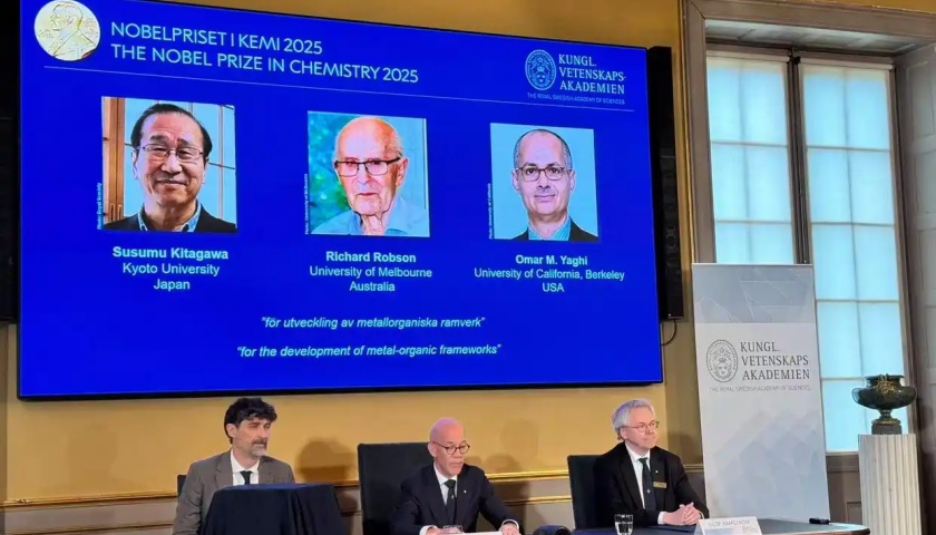 2025年10月8日,据央视新闻消息,瑞典皇家科学院决定将2025年诺贝尔化学奖授予北川进(Susumu Kitagawa)、理查德·罗布森(Richard Robson)以及奥马尔·M·亚吉(Omar M. Yaghi)三位科学家,以表彰其在金属有机骨架化合物开发领域的贡献。