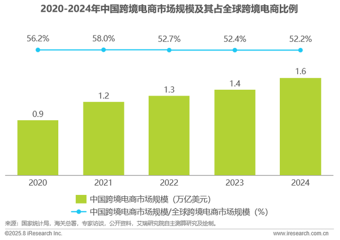 中国跨境电商市场持续扩张,稳居全球跨境电商主力,出口导向格局持续强化