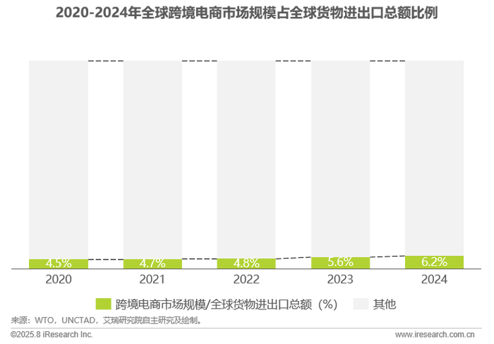 全球跨境电商市场持续扩大,货物贸易占比稳步提升,推动全球贸易数字化转型