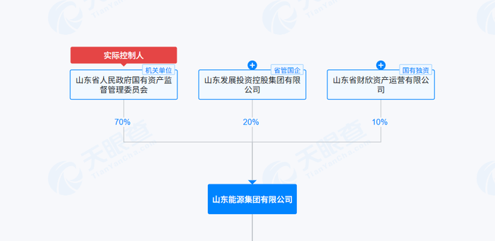 从股权结构看,山东省人民政府国有资产监督管理委员会持有山东能源70%股权,山东国惠投资控股集团有限公司持有其20%股权,山东省财欣资产运营有限公司持有其10%股权。
