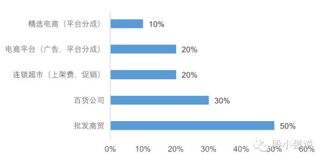 其次是渠道的效率。与京东/天猫不同的是,在精选电商平台上,由于渠道的背书(上架销售本身就是一种背书),对于自身品牌的投入也可以相应的减少。此外,由于同一品类的产品很少(甚至只有一款),厂商通常不需要额外地做广告投放来获取用户(比如淘宝的直通车),因此营销费用也可以省去。就目前而言,新兴的精选电商平台通常收取5-10%的渠道费用,这一比例也确实是低于传统电商的。综合下来,整个渠道的的效率通常可以低10%左右。