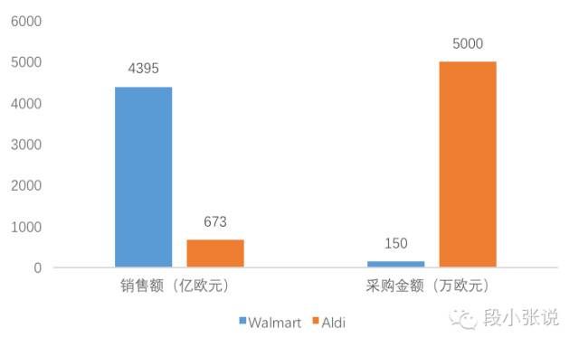 (Walmart和Aldi的销售额与采购金额比较,作者根据公开资料整理)