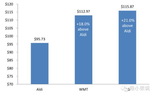 单品的采购量意味着话语权。根据16年4月德意志银行的报告统计,Aldi的40种相同商品一篮子价格比Walmart低18%,比美国的DollarGeneral低21%。要知道后两者均以廉价和供应链效率出名,Aldi比他们低这么多,还是很惊人的。