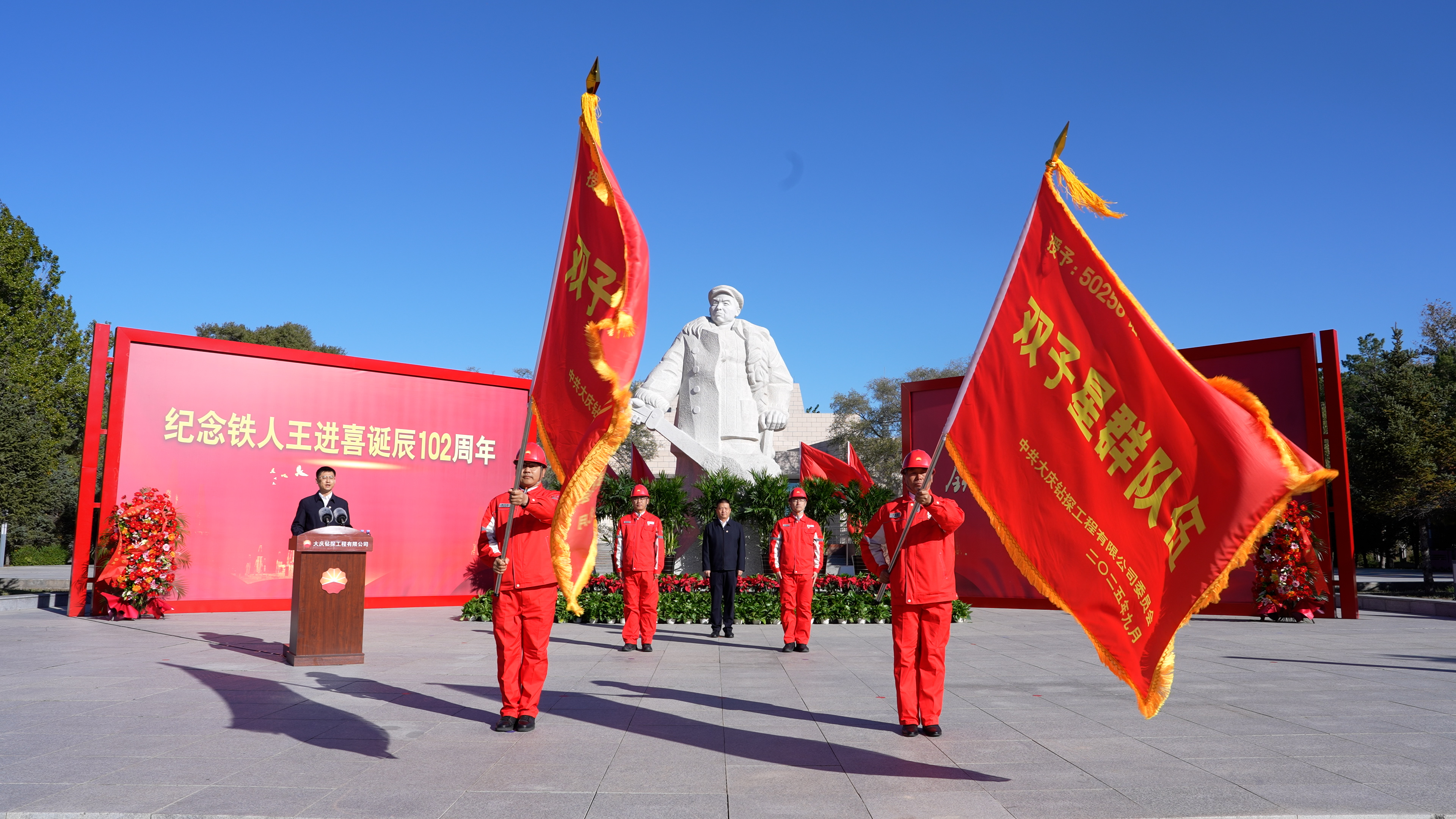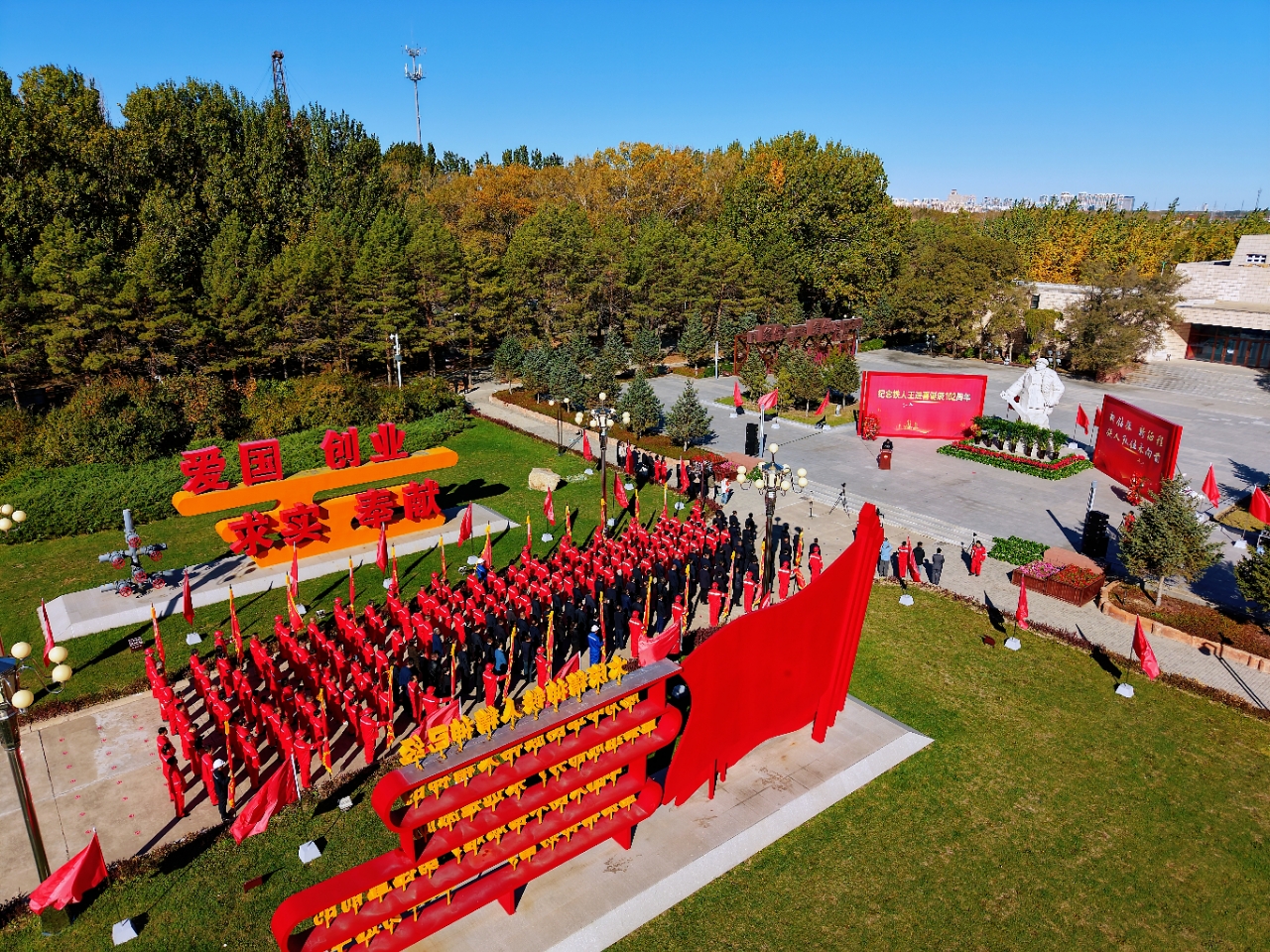 金秋十月,天朗气清。大庆红岗区铁人第一口油井井址的王进喜雕像前红旗猎猎,宣誓声铿锵震耳。