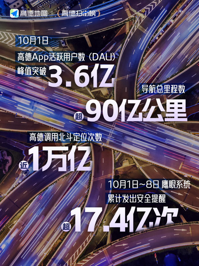 放眼全球,很难找到比这规模更大的秋季迁徙。根据交通运输部据初步统计,10月1日至8日,跨区域人员流动量约24.32亿人次,创历史同期新高;日均3.04亿人次,同比增长6.2%;其中,自驾出行是绝对主力,占比约八成。极致的出行消费高峰期把一贯低调的高德推到了聚光灯下。