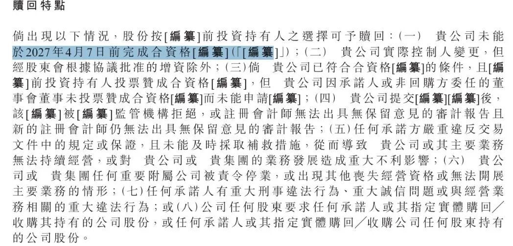 尽管先为达生物此前曾获得资本青睐并完成多轮融资,但公司与投资人同步签订了赎回协议,条款明确约定:若公司未能在2027年4月7日前完成上市,相关投资人有权选择启动赎回程序。
