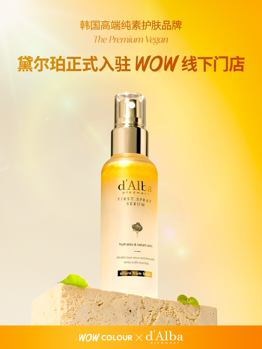 随着「纯素护肤」成为全球美妆关键词,10月10日国际高端护肤品牌 d'Alba 黛尔珀正式宣布登陆中国美妆集合地标 WOW COLOUR。d'Alba 黛尔珀凭借纯净天然的品牌哲学与先锋产品,已在天猫国际、抖音、快手、小红书等线上平台收获超多好评。此次线下亮相,标志着品牌在中国市场开启全新篇章,以更近距离的姿态,回应消费者对纯净护肤与高端体验的期待。