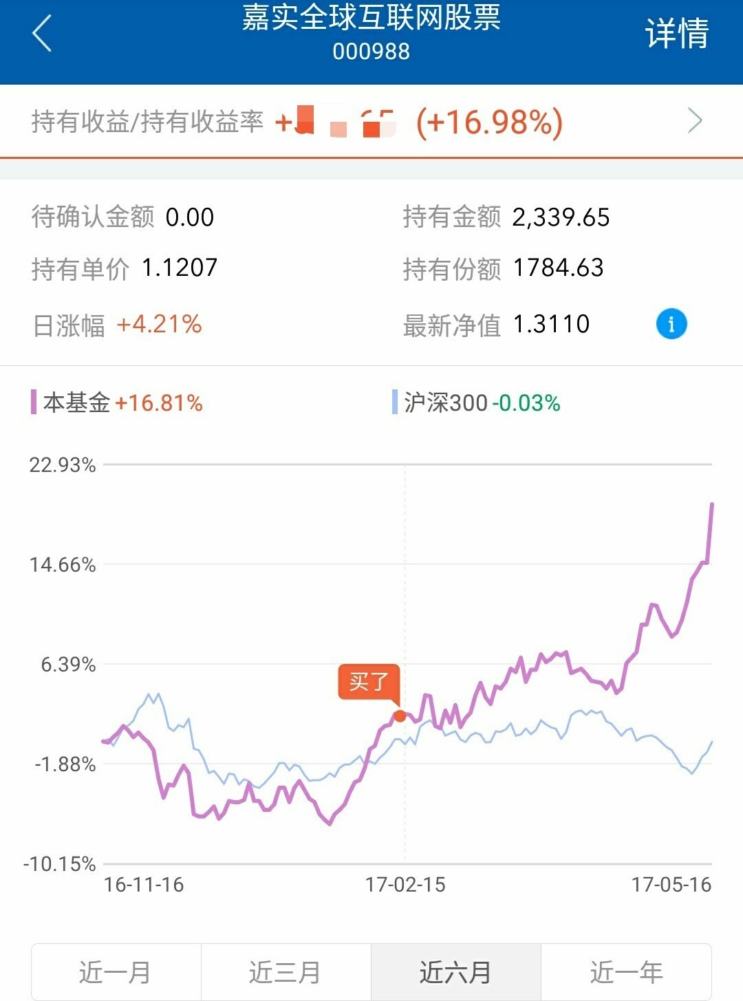 互金投资手记是在2月13日申购的,差不多持有了3个月时间,在赎回之前收益率为16.98%。但是最终确认的收益只有13%左右,主要原因是QDII基金的确认时间很长,而且还遇到了周末顺延,加之扣除较高的赎回费。