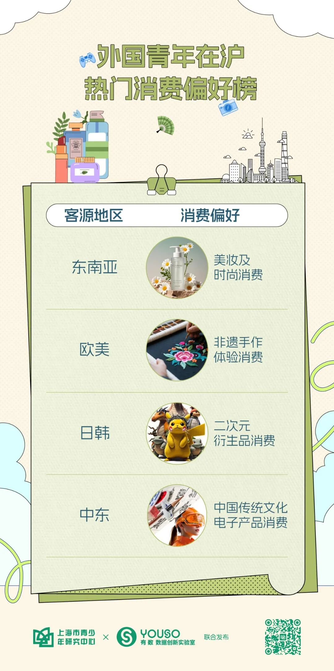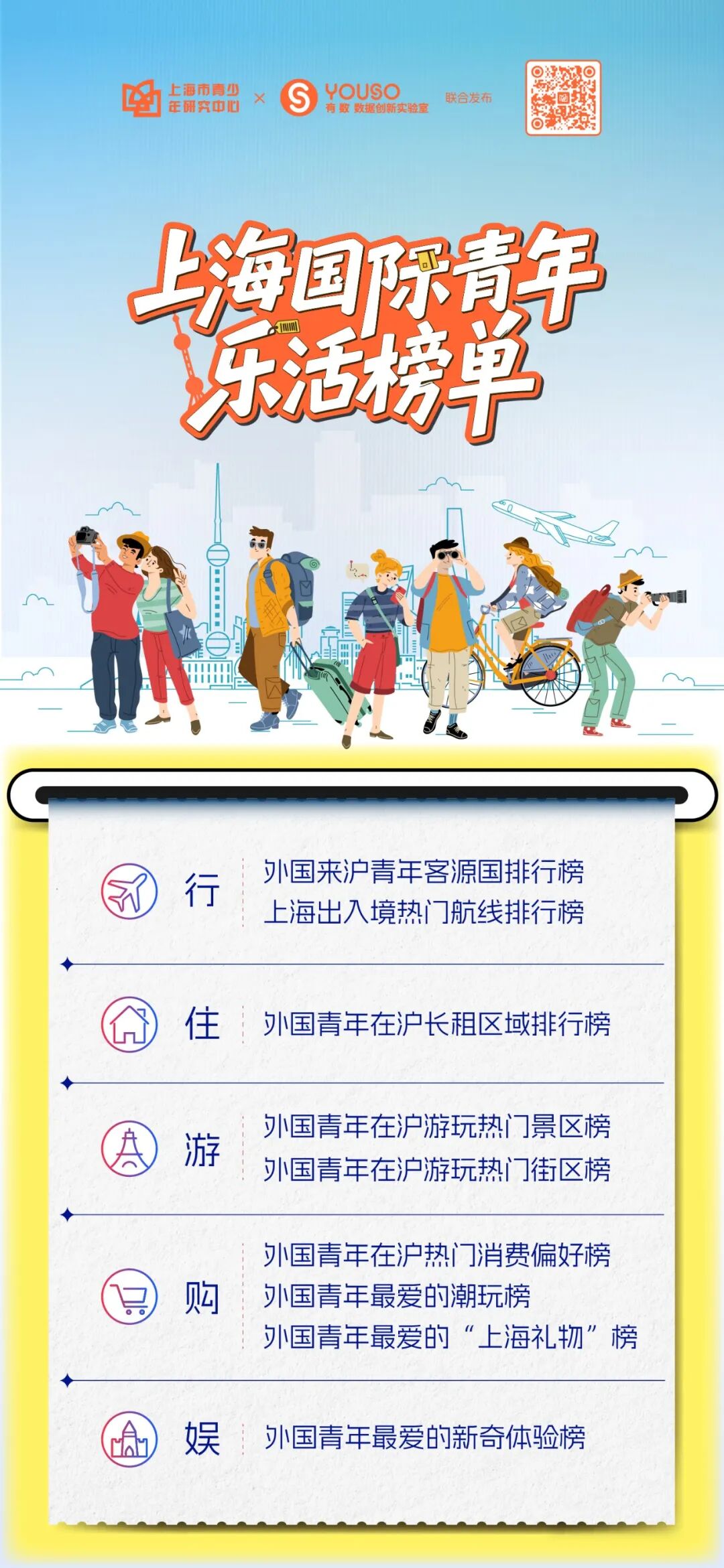 上海市青少年研究中心及旗下有数数据创新实验室开展外国青年来沪消费趋势专题研究,运用研究中心长期调研数据、携程平台消费大数据,以及主要社交媒体平台、境外人士使用的主流旅行预订平台评论数据,发布《2025外国青年游上海文旅消费报告》,推出上海国际青年乐活榜单。