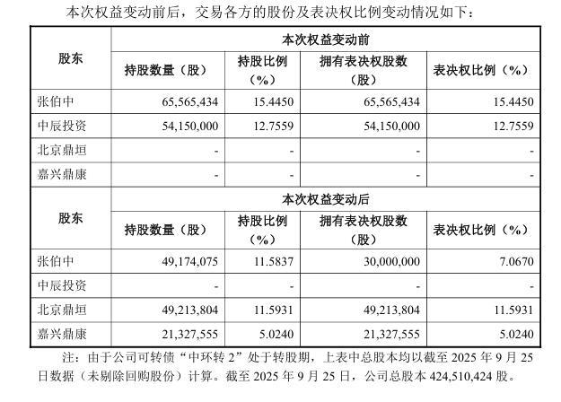 这一安排直接导致了中环环保表决权结构的根本性重塑:交易及表决权放弃完成后,新入主的北京鼎垣和嘉兴鼎康将合计持有中环环保16.6171%的股份,并拥有同等比例的表决权,从而成为新的控股方;同时,原实控人张伯中拥有的表决权比例将从交易前的15.4450%降至7.0670%。