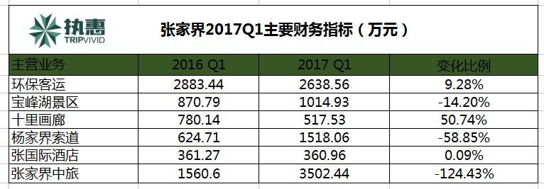 一、资源整合能力弱,主营业务全面下滑:张家界2017年第一季度报告显示,报告期实现营业收入6918万元,较上年同期减少2166万元,同比下降23.85%;宝峰湖景区营业收入870万元,较上年同期下降14.20%;杨家界索道营收624万元,较上年同期下降58.85%;张国际酒店实现营业收入361万元,较上年同期增长0.09%;张家界中旅实现营业收入1560万元,较上年同期下降124.43%。