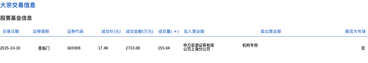 喜临门今日大宗交易平价成交155.04万股,成交额2710.08万元