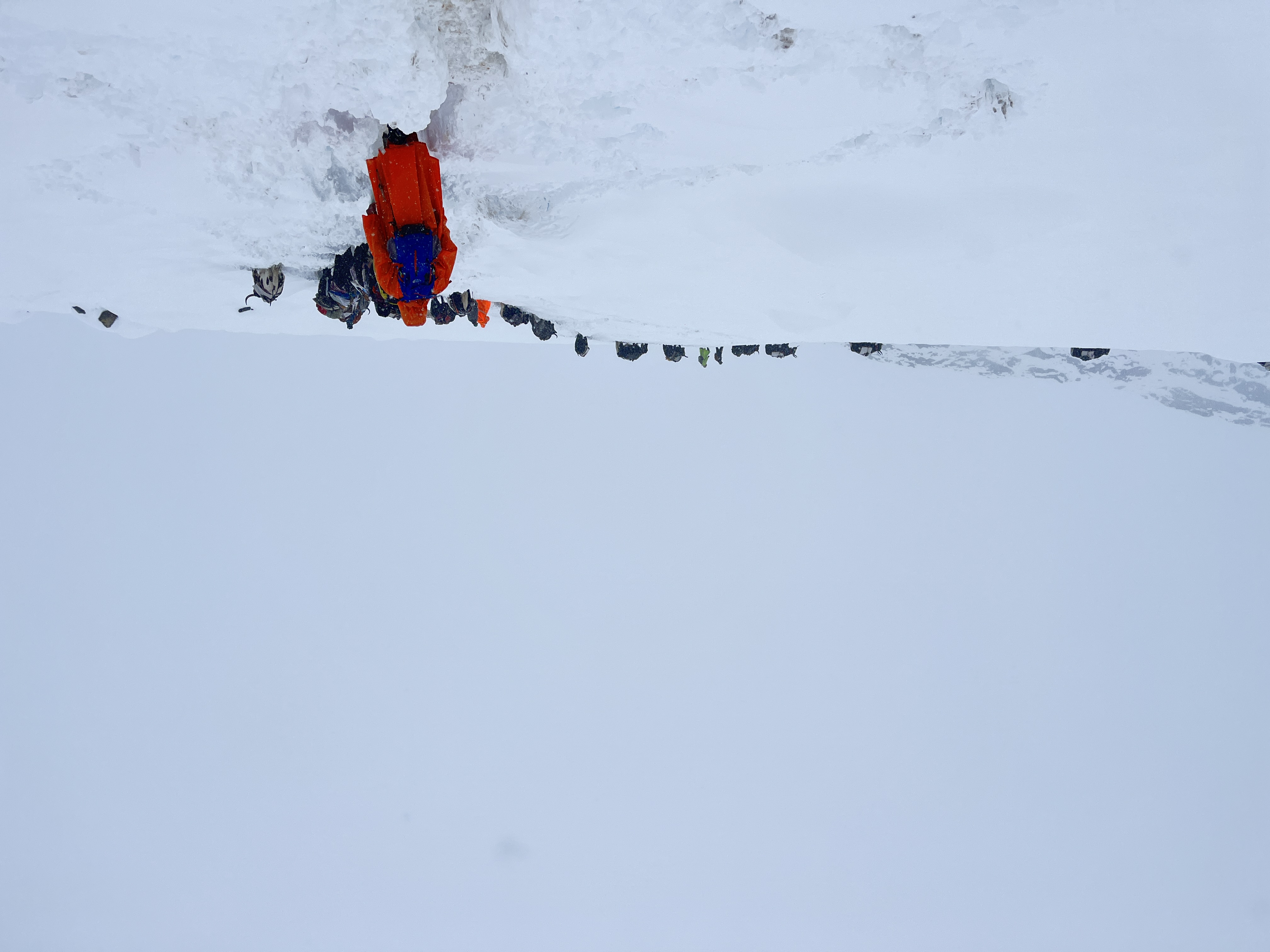 在安荣下了一个很大的流石坡,又上了一个很大的坡后,山里又开始下雪,而且还刮着大风。安荣说:“从这个时候开始,雪就基本没停过了。“这个时候是4号下午两三点钟左右,安荣与其他领队当即意识到这场雪不会小了。