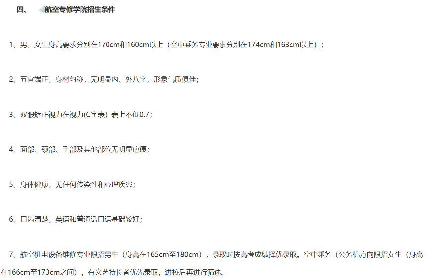 报考空乘专业并不轻松,一些学校甚至将外貌要求直接写入招生条件。