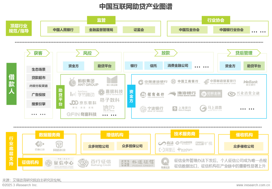 《2025年中国网络助贷行业研究报告》,以“特殊时期-历史使命-群体价值-未来趋势”为核心脉络,解析行业发展逻辑。报告指出,数字经济推动下,2025年中国网民达11.2亿,信贷成居民日常,2024年不含房狭义消费贷余额21.7万亿;互金助贷2024年规模3.5万亿,CR5达76%,以增信、分润为主要模式,风控、资金获取与获客为核心能力。基于5285人调研,借新还旧与大额消费用户为行业深度客群,需求及信息敏感度存差异。面对监管新规,24%以上业务利润或降3%-6%,平台需转向24%以下业务或拓展多元金融服务,为行业合规化发展提供方向。