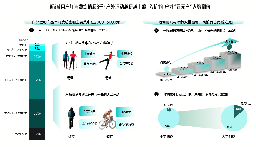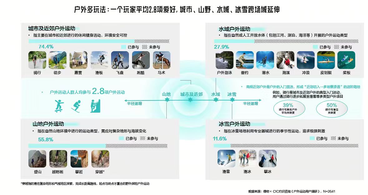 户外运动渗透城市、山野、水域、冰雪四大圈层,6成用户年消费超8000元