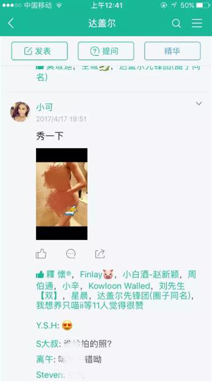 在某家知识付费平台里,仍有一些用户在发布自己群组的二维码。我们通过这种方式免费进入一个名为“达盖尔”的群组。这个群组创立于今年1月,成员数已经超过350人。这里的用户更为活跃,发布的图片尺度很大。