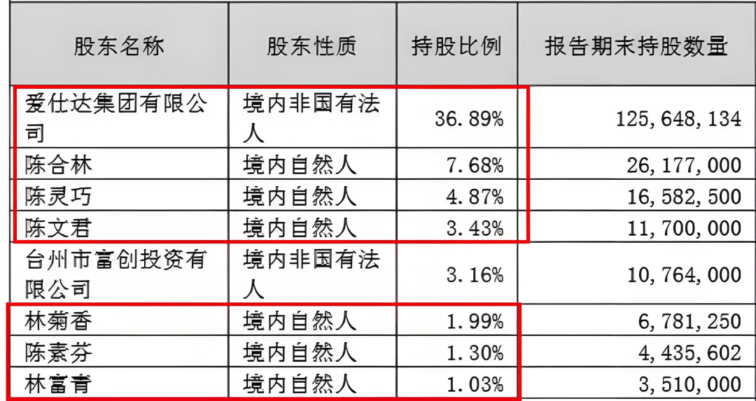 截至2025年中期末,除富创投资持有的股份之外,陈合林、林菊香夫妇和儿子陈文君、女儿陈灵巧4个人合计持有爱仕达54.86%股权,是公司实际控制人。