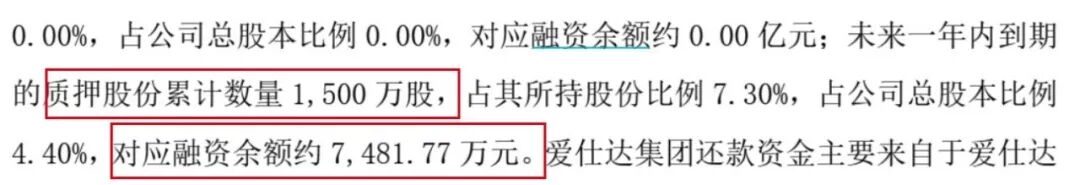 大量质押股票带来的资金压力正逐渐浮现。截至2025年4月10日,爱仕达集团及一致行动人未来一年内到期的质押股份累计数量为1500万股,对应融资余额约7481.77万元。