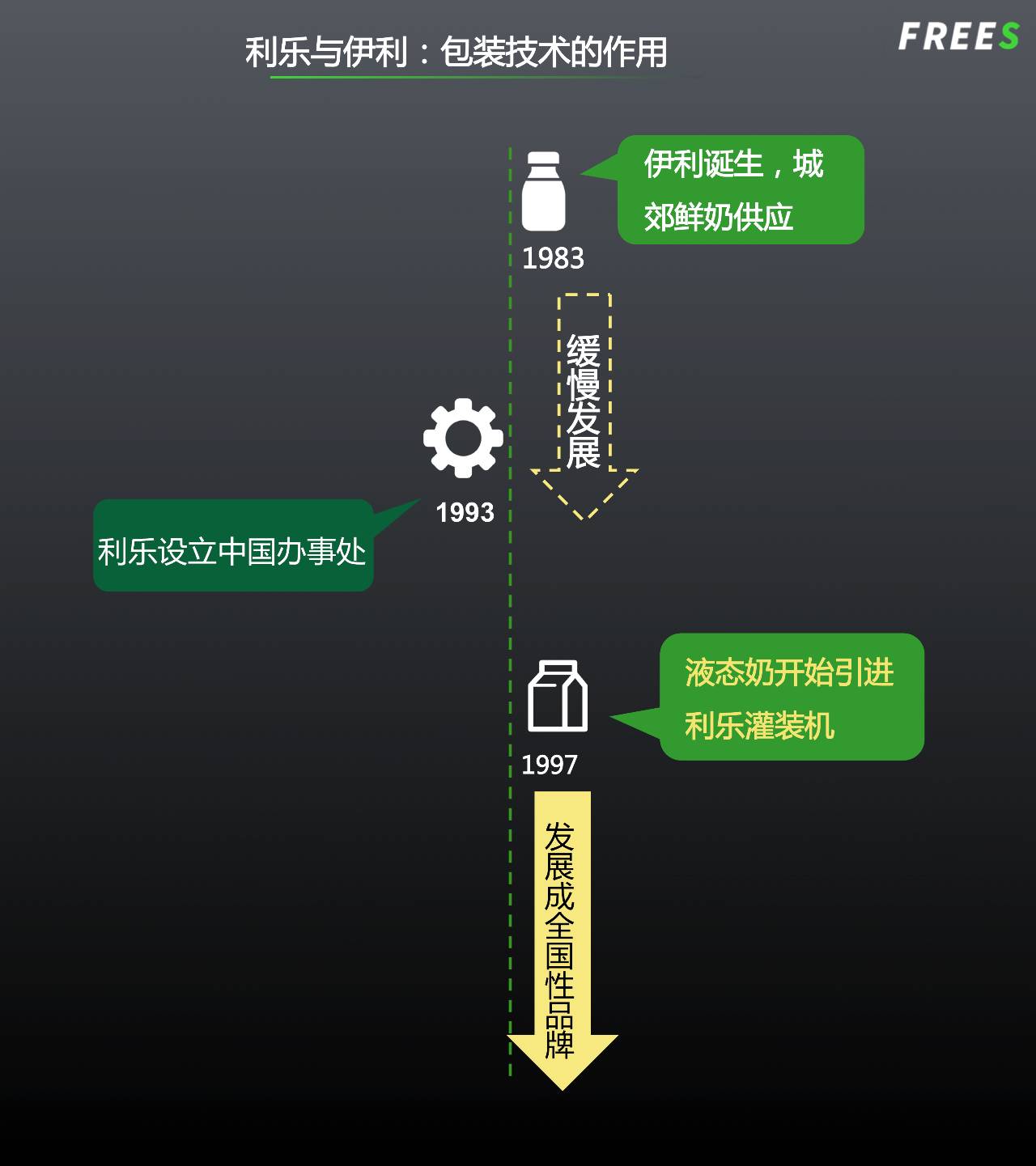 1970 年代,利乐进入中国市场,并于 1993 年正式拓展其在华业务。同年,伊利进行股份制改造,由国营企业变为股份制企业。1995 年,两家企业开始接触。1997 年,伊利引入利乐包装生产线,我们熟悉的伊利盒装牛奶由此诞生。