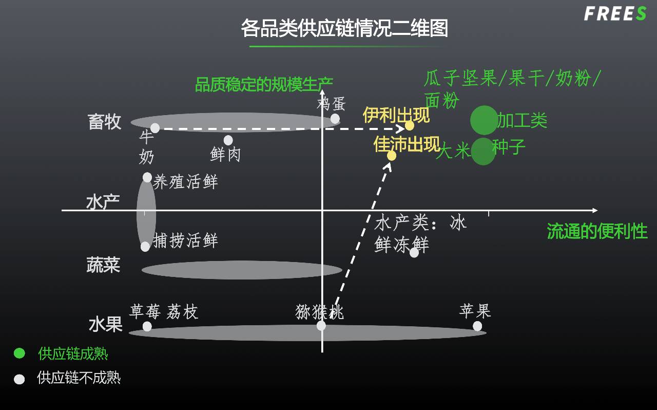 成熟的供应链(生产稳定、流通方便)是农产品品类出现品牌的必要条件。
