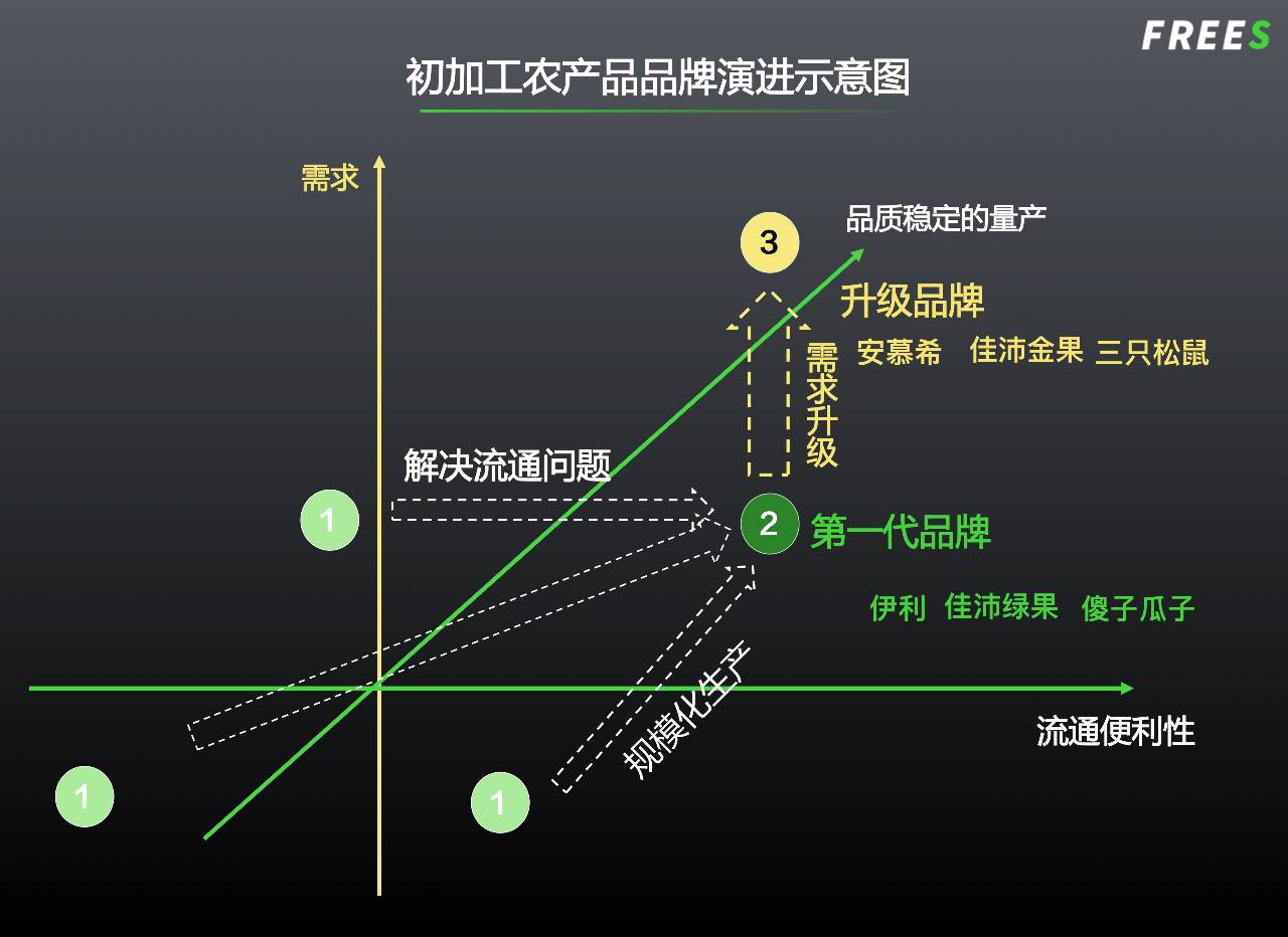 对于供应链成熟的品类,当产品和渠道出现升级空间时,即存在新一代农产品品牌出现的机会。
