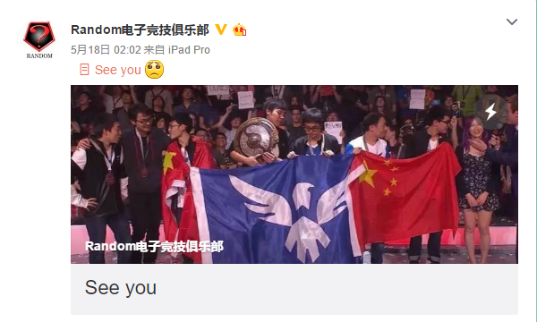 4月19日,基辅特锦赛直邀名单中Wings战队名称被改为 Team Random。4月23日,五名选手通过微博表明他们的离队原因:老板一再拖欠工资,并且不再关心DOTA2。