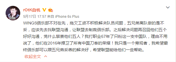 还有我想说,之前网上的节奏谣言都是不实的,请尊重Wings俱乐部。