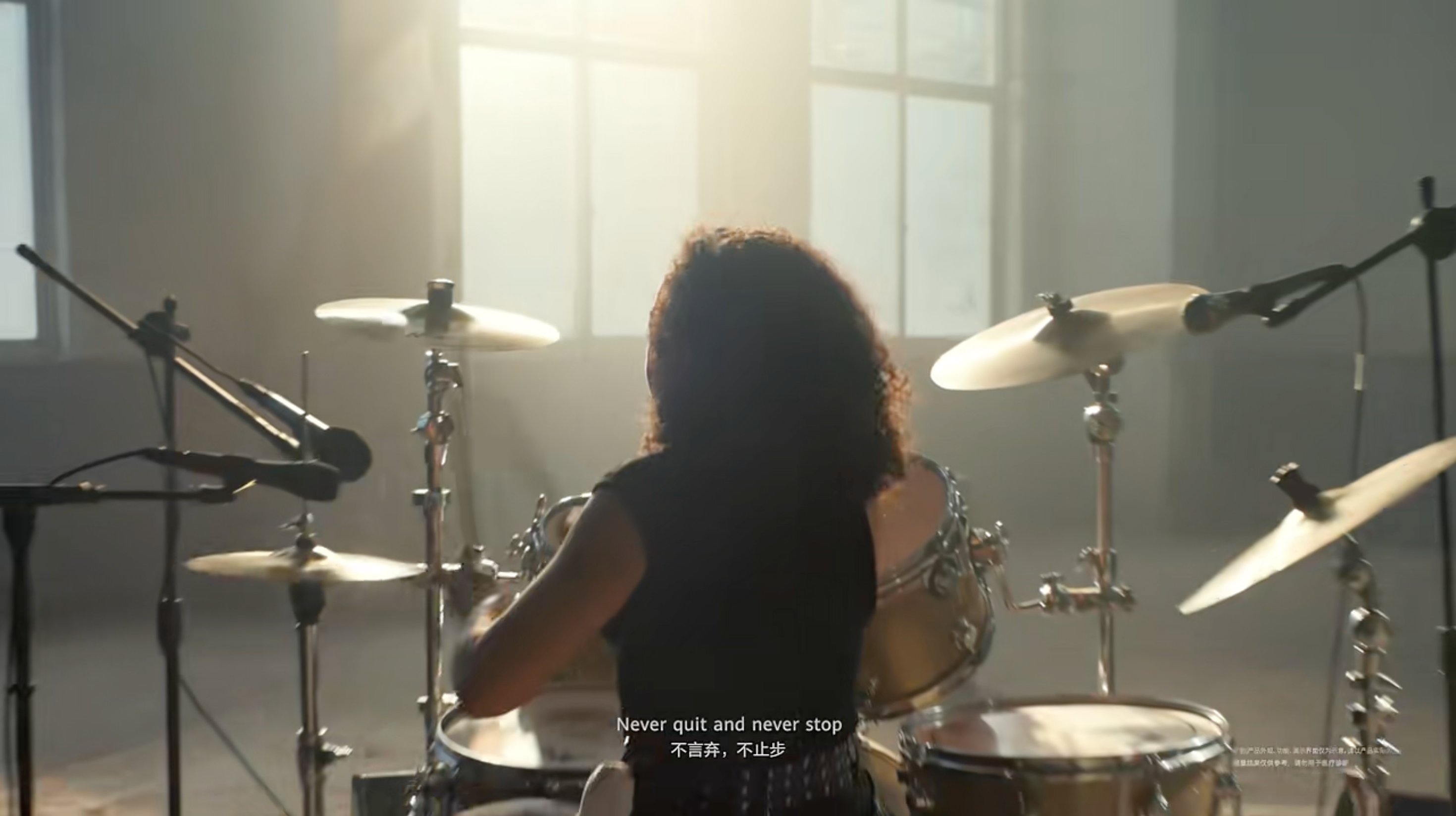 有趣的是,华为产品在视频中并非主角,而是助力年轻人探索自我和追逐梦想的工具,是“梦想同行者”。这种克制的品牌表达,也恰恰与用户成就了更深层的情感联结。