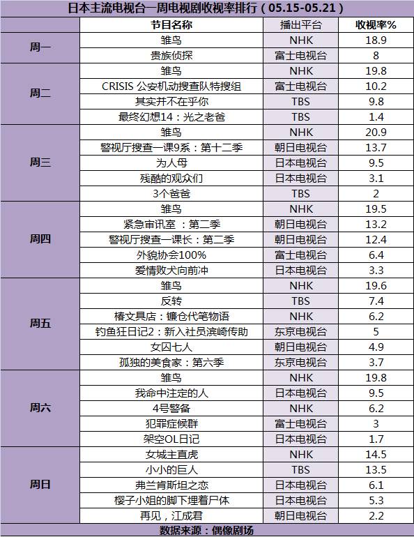 播出平台:日本电视台