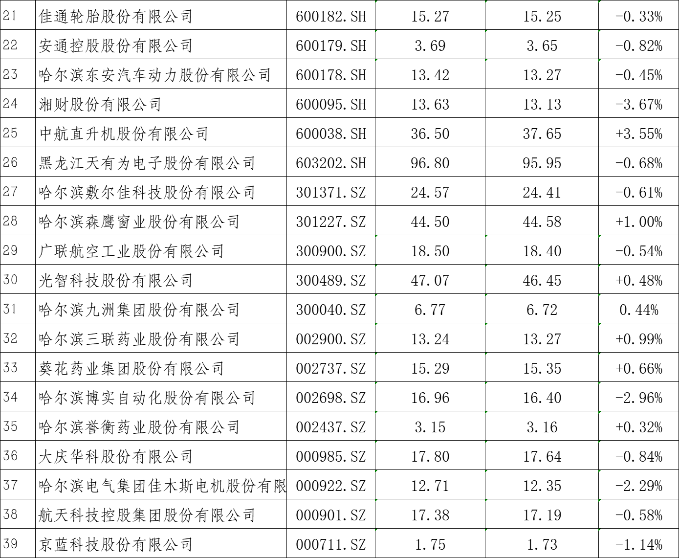 黑龙江作为我国东北地区的重要经济支柱,其资本市场动态备受关注。本文表格每日更新,汇总黑龙江省主要A股上市公司的开盘价与收盘价。数据来源为公开证券市场统计,仅供参考,不构成投资建议。投资者据此操作,风险自担。