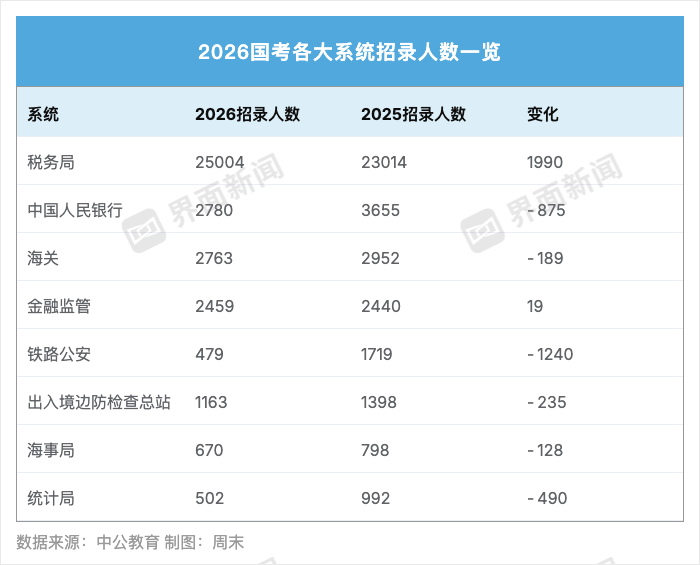 但对考生群体而言,这些变化最直接的感受,是本次国考的竞争难度或将上升。