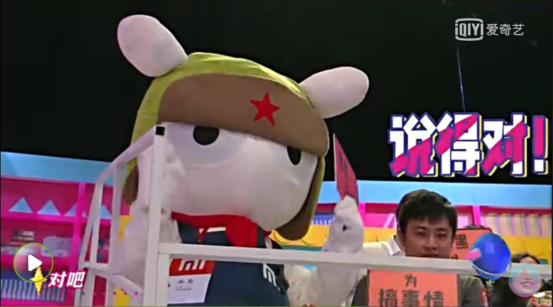 小米品牌卡通形象米兔玩偶成为观众席中最活跃的分子,不仅服装在现场配合节目内容72变,更是当起热场导演,配合节目内容不停举起“搞事情”“R U OK”等手举牌互动,生动诠释出一个AB型血白羊座产品经理的性格特征,而全套米兔表情也在后期配合节目内容使用。
