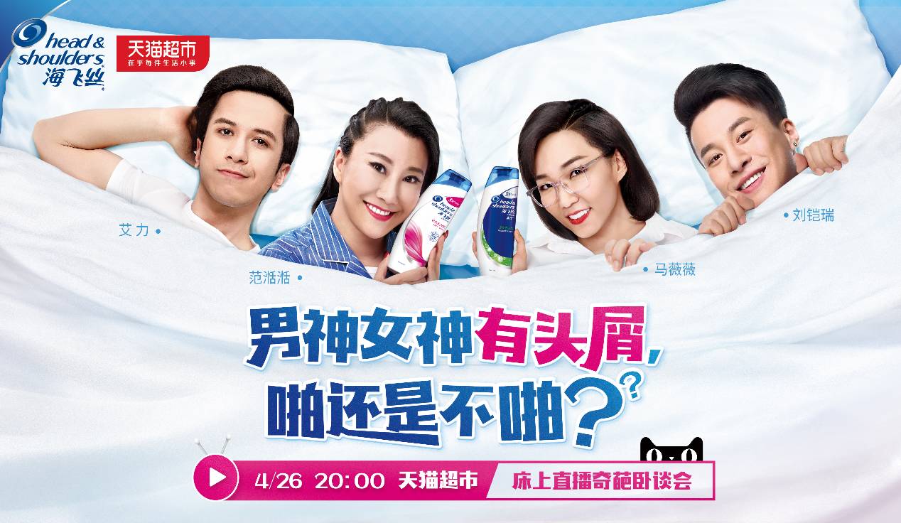 又比如作为行业赞助的海飞丝签约了奇葩艺人,围绕《奇葩说》进行有效的整合传播。4月26日海飞丝在天猫超市直播“奇葩卧谈会”4位奇葩首次在床上直播的形式也吸引了众多网友的观看,当天微博相关话题浏览量高达5600万,是当天微博声量最高的品牌。