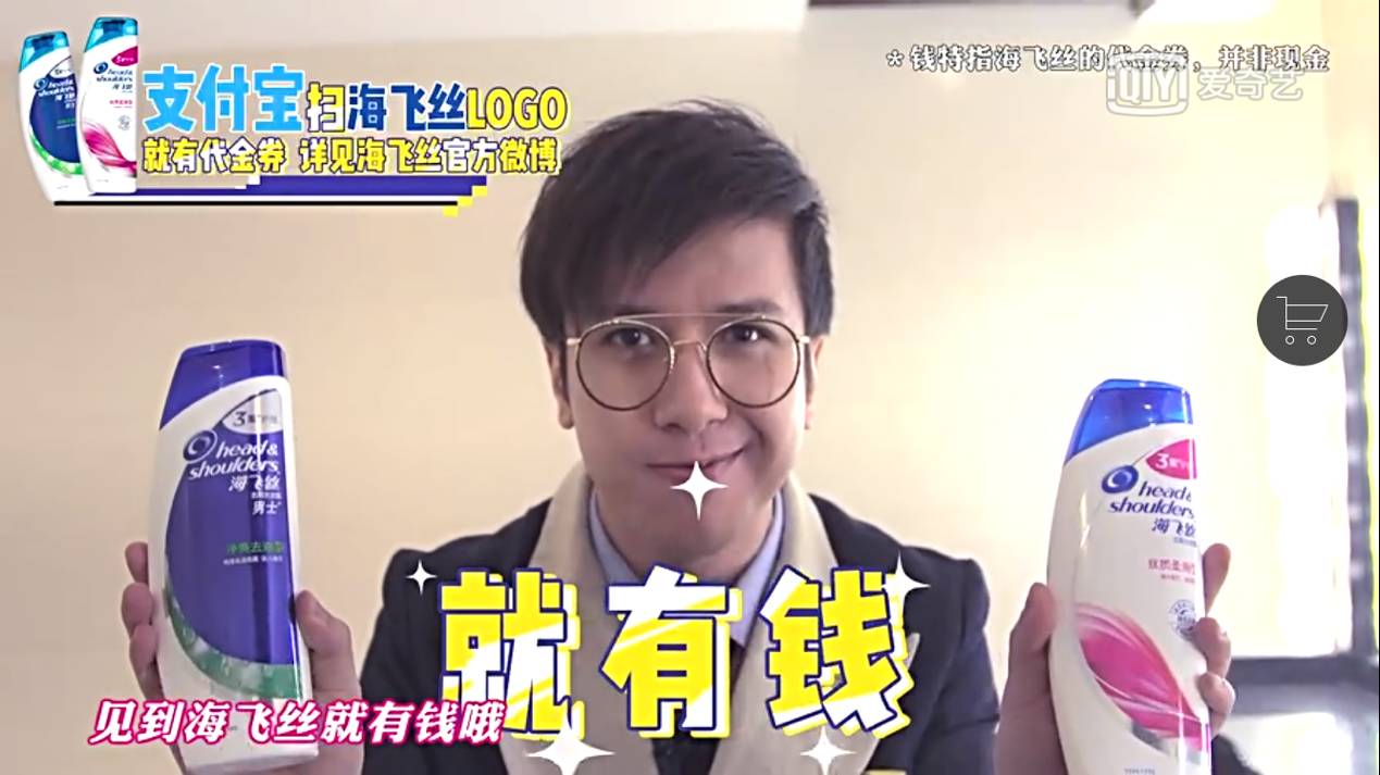 海飞丝在节目中出其不意的花式植入,当你以为只是一个关于“和心意对象出去旅游想要带什么”的小调查时,却引出了支付宝扫海飞丝LOGO就有“钱”的活动: