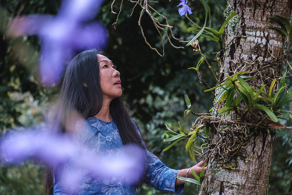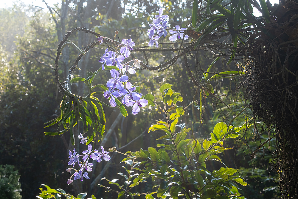 马悠博士与李旻果女士悉心甄选并重新种植了五十余种本地原生树种,随后着手修复保护区内湿地生态系统,以重新激活自然水循环。自此,昆虫、鸟类、小型哺乳动物、两栖动物与爬行动物纷纷回归这片净土。如今这里的树木数量已达150,000株,繁茂的森林为兰花提供了理想的栖息环境。万代兰属附生植物,无需土壤即可生长。它从穿透树隙的阳光中汲取能量,在林冠高处盛放。数十米长的气生根盘踞树干,吸收空气中的水分与枝干腐殖层中的无机盐。天籽自然保护区重焕生机,重新成为万代兰及众多本地物种繁衍生息的理想栖所。