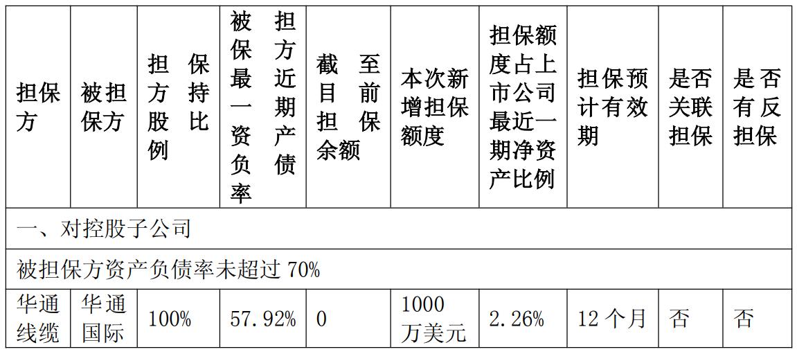 值得注意的是,公告中还披露了华通线缆累计对外担保数量及逾期担保的数量。