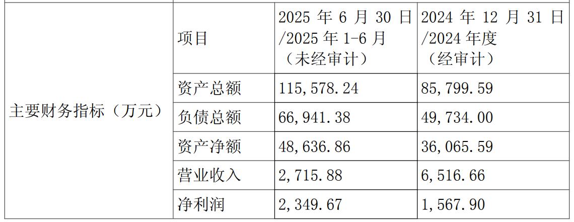 财务方面,截至2025年6月30日,华通国际未经审计的资产总额为11.56亿元,负债总额为6.69亿元,资产净额为4.86亿元。2025年1-6月,华通国际未经审计的营业收入为2715.88万元,净利润为2349.67万元。