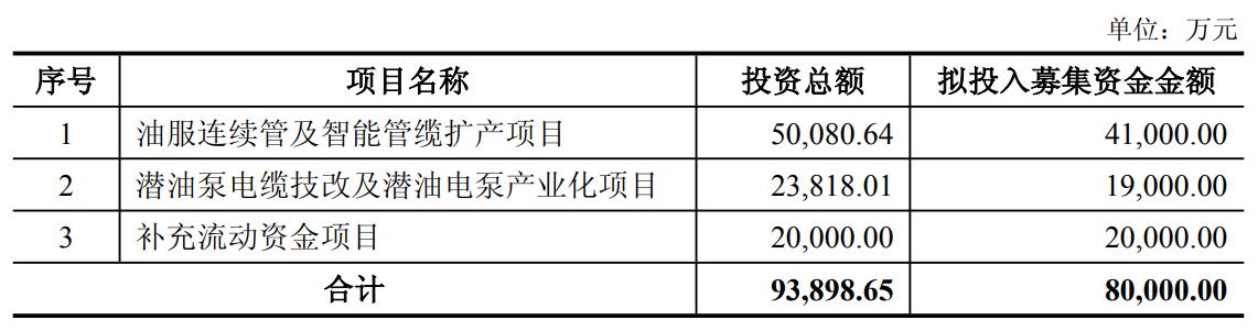 至于本次募集资金用途,华通线缆称,扣除发行费用后,募集资金净额拟投资于“油服连续管及智能管缆扩产项目”、“潜油泵电缆技改及潜油电泵产业化项目”以及补充流动资金。