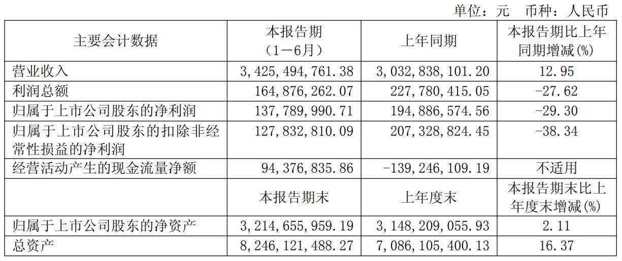 财务方面,2025年上半年,华通线缆实现营业收入34.25亿元,同比增长12.95%;归属于上市公司股东的净利润1.38亿元,同比下降29.30%。