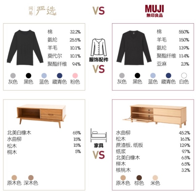 DT财经曾经发文,对比严选和无印良品,指出其从画风、选品到具体产品品类有多处雷同。