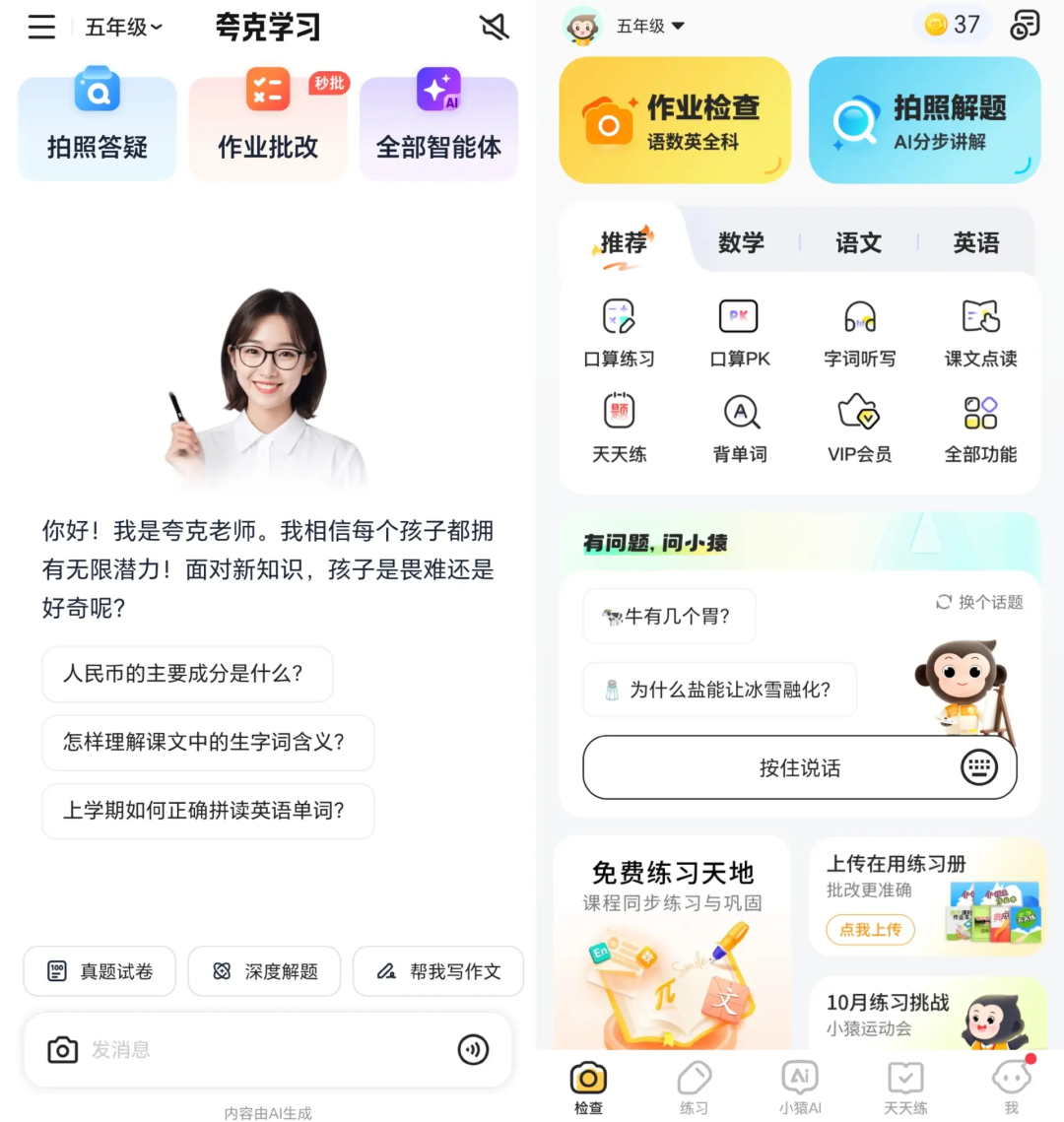 左为“夸克学习”,右为“小猿AI”