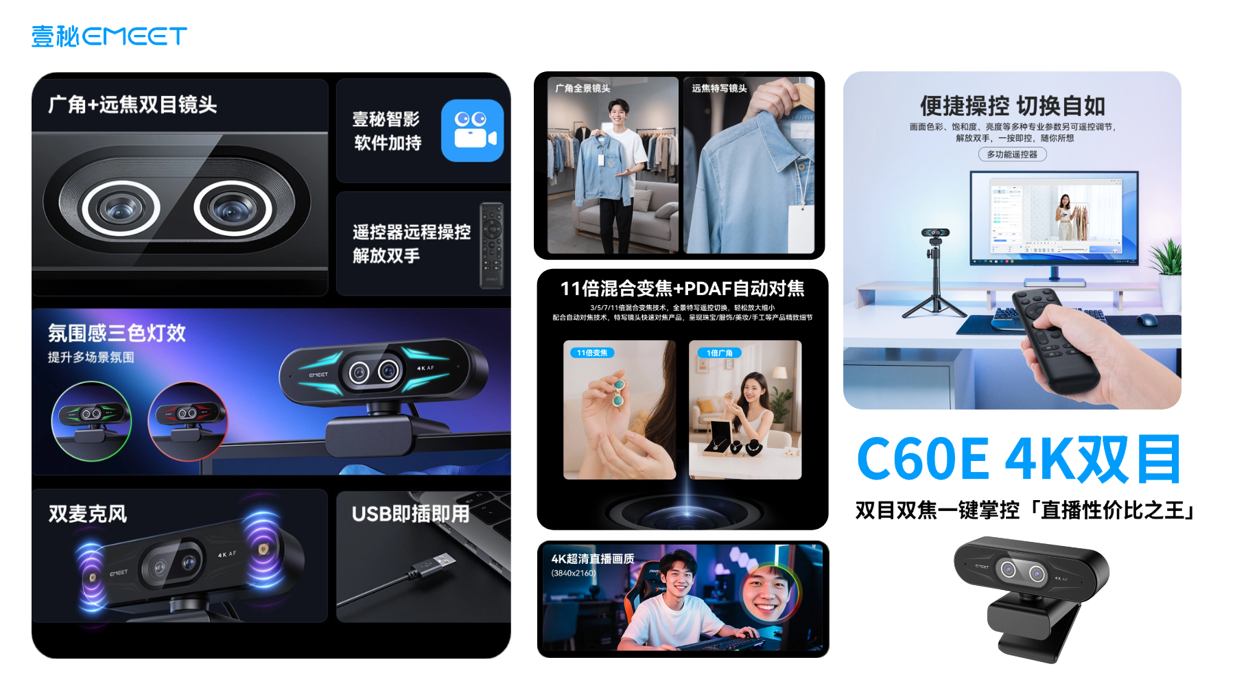 1、EMEET超清摄像头C60E 4K