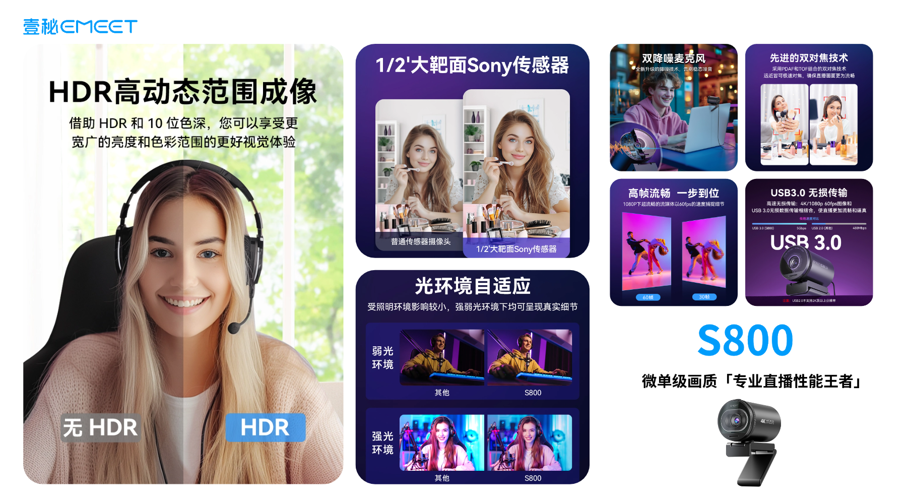 1、EMEET 4K超清摄像头S800