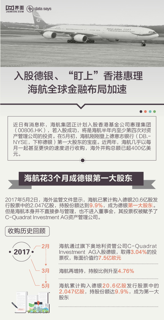 【图解】入股德银、“盯上”香港惠理 海航全球金融布局加速