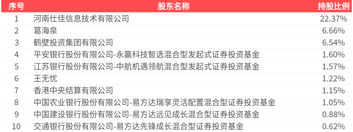 公司股东户数为4.43万户,前十大股东持股数量为2.00亿股,占总股本比例为43.66%,前十大股东持股情况如下: