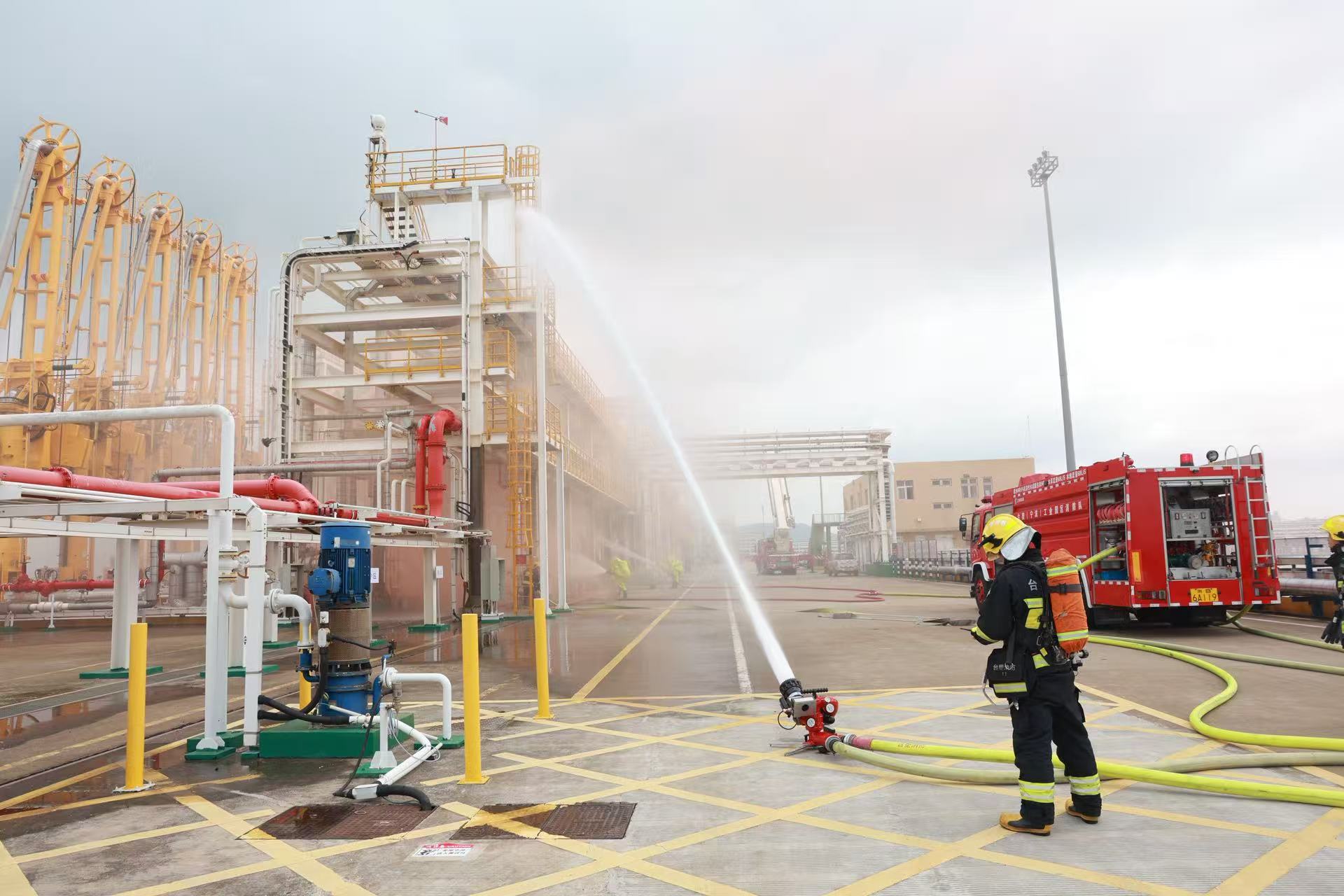 10月16日下午,一场模拟暴恐袭击、化学品泄漏、火灾及水域污染等多重险情的港口设施保安演习暨应急联动演练,在宁波舟山港核心港区的台塑港务(宁波)有限公司化三码头及周边水域紧张有序展开,旨在深度检验宁波港域应对重大突发安全事件的综合处置能力。