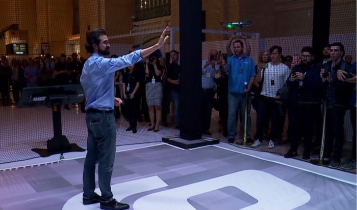发布会现场,大疆创新战略合作总监迈克尔·佩里通过手势让“晓”成功从他手掌中起飞;之后,通过向左或向右移动手掌,无人机也会向对应方向移动。当他同时用两只手招向无人机时,无人机就会飞回他附近,最终在他的手掌上着陆。